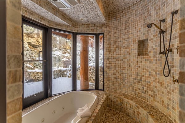 Experience spectacular mountain views from the pinnacle of mountain living at The Rock! This home offers 5 bedrooms, an in-ground hot tub, theater and game room, spa-like bathrooms, 3 King suites, and a private waterfall.