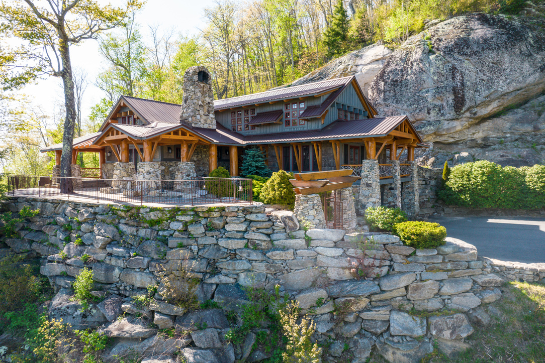Get away to a $3.5 Million Mountain House featuring a 270 Degree View of the Blue Ridge Mountains with Waterfall on 8 Acres in Eagles Nest